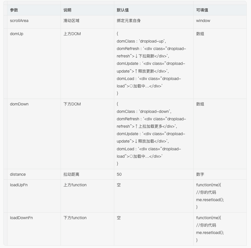 dropload 插件的参数