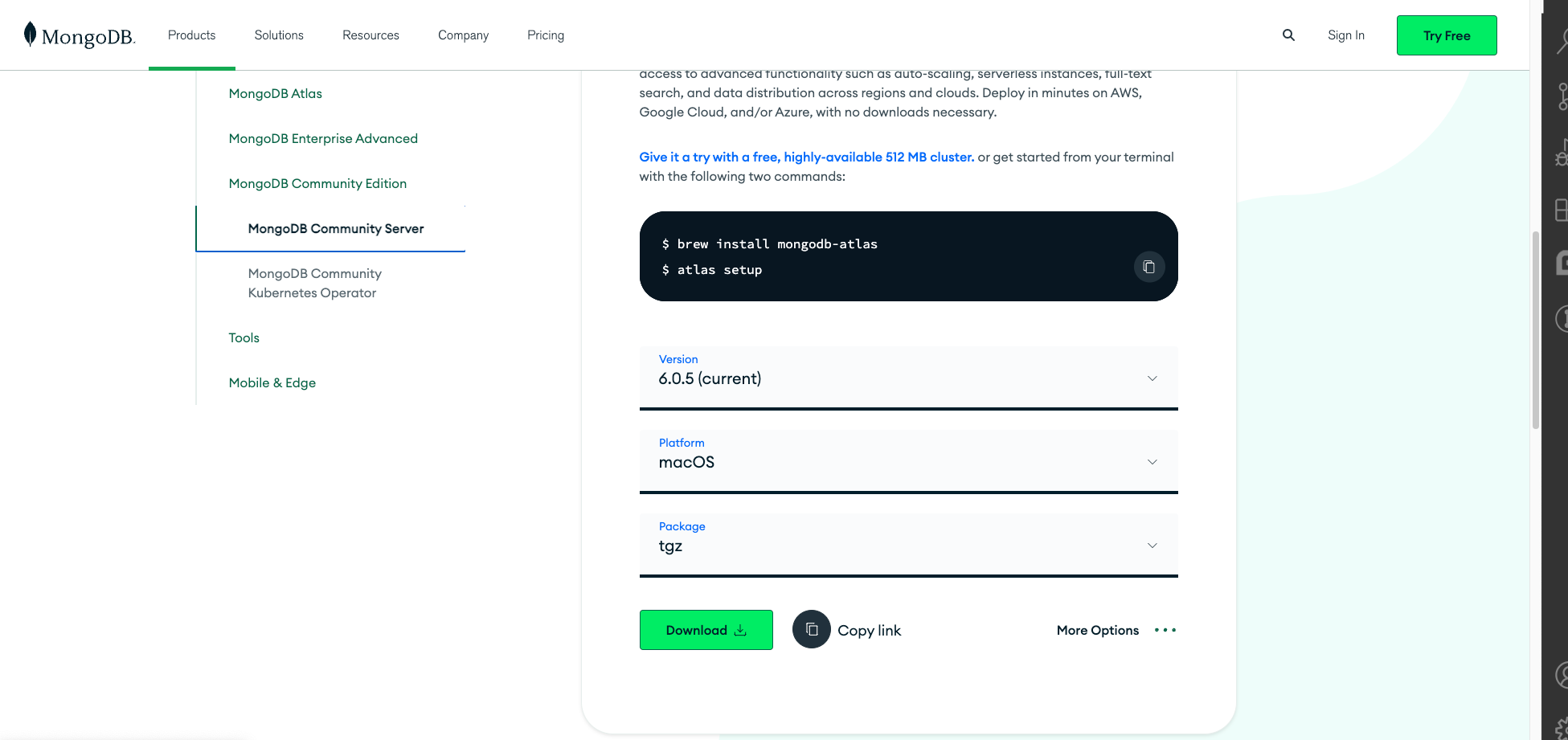 官网地址:https://www.mongodb.com/download-center/community?jmp=nav ,可以选择自己想要使用的版本
